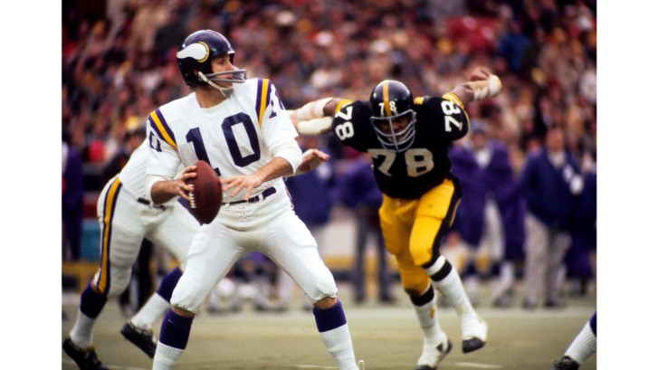 Tarkenton is one of the top ten-or-so NFL quarterbacks of all-tiem. The Vikings legend led the team to three Super Bowl appearances, won the MVP in 1975, and held nearly every major passing record when he retired in 1978. Tarkenton’s scrambling ability helped revolutionize the quarterback position.