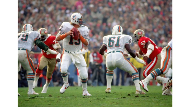 Dan Marino topping this list is no surprise to anybody. The NFL’s most prolific passer when he retired, Marino was one of the few greatest pocket passers of all time. He made 9 Pro Bowls, was First-Team All-Pro three times, won the MVP in 1984, and was a first-ballot Hall of Fame selection. He lost his only Super Bowl appearance that season to Joe Montana and the San Francisco 49ers. The Dolphins did a really poor job of building around Dan Marino during his career.