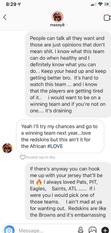 Late last night a fan released a DM exchange with the Redskins linebacker Mason Foster where Foster blasted the team, players and fanbase.