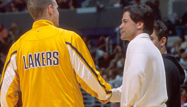 That included Rob Lowe, who apparently traveled along with Los Angeles sideline staple Jack Nicholson during some road trips during the decade. During a recent chat with Jimmy Kimmel, the actor revealed the duo had a habit of flying on the team’s plane and staying at their hotel until he was banned from doing so by Pat Riley for a pretty understandable reason.