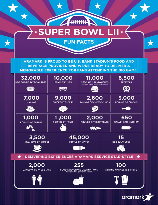 You can click here to see Aramark’s press release which includes descriptions of all the concessions to be sold at Super Bowl LII.