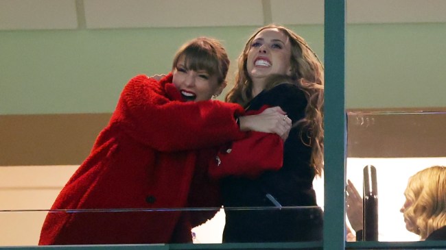 GREEN BAY, WISCONSIN - DECEMBER 03: Taylor Swift and Brittany Mahomes react in a suite during the game between the Kansas City Chiefs and the Green Bay Packers at Lambeau Field on December 03, 2023 in Green Bay, Wisconsin. (Photo by Stacy Revere/Getty Images)