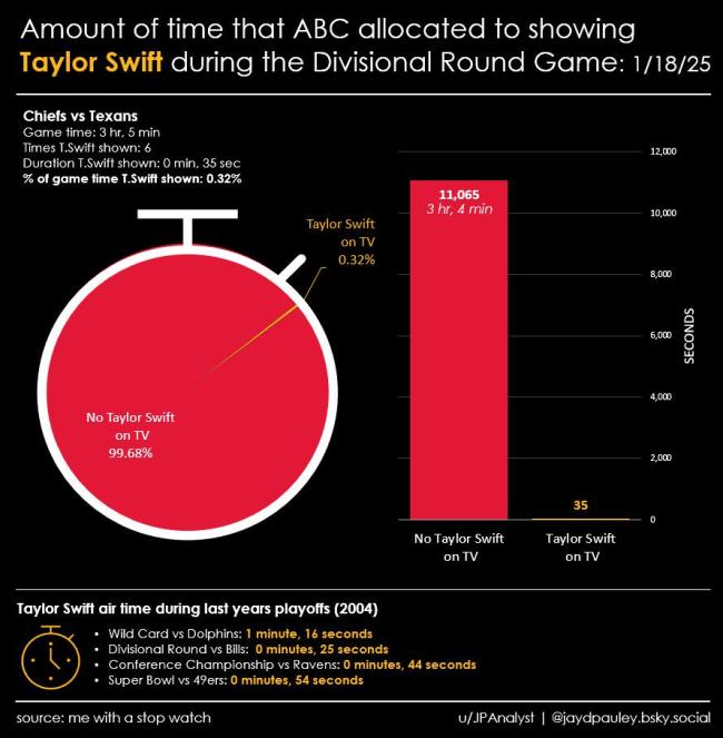 This chart from Reddit user r/JPAnalyst shows just how little they showed Taylor Swift.