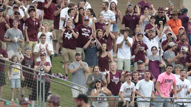 With the Aggies threatening in the second inning, chaos erupted near that first-base dugout. Two patrons in TAMU gear were seen shouting at Kevin O’Sullivan before being corralled by security.