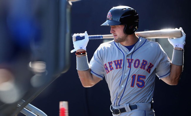 Recovering football player Tim Tebow might have struggled a bit during his brief stint at spring training with the New York Mets this year, but the star of the Binghamton Rumble Ponies pulled a Dennis Reynolds and inspired hope when he hit a home run during his first at-bat of the season (following in the footsteps of a proud tradition he started last year). Unfortunately, things only went downhill from there, and the ex-quarterback is currently sporting a batting average of .167 and has struck out half of the time he’s stepped to the plate this season.