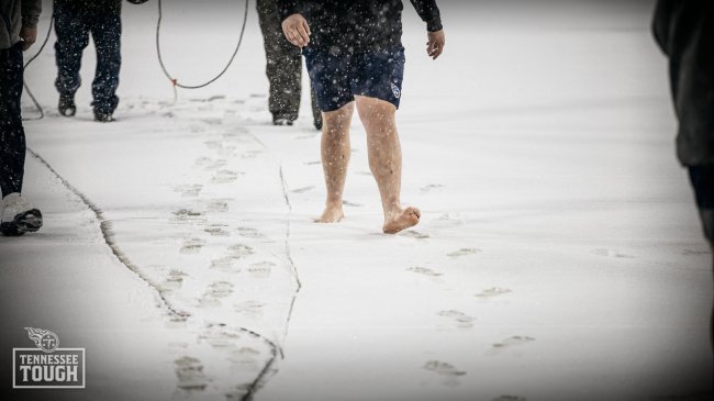 Offensive lineman don’t feel cold and Titans center Ben Jones is no exception. Prior to Sunday’s matchup with Green Bay, Brown continued his weekly tradition and walked onto the field barefoot despite the blizzard conditions. The 6-foot-3, 316-pound Alabama native didn’t grow up around snow, but it wasn’t going to stop him from donning his finest pair of shorts, leaving the shoes in the locker room and going for a stroll.