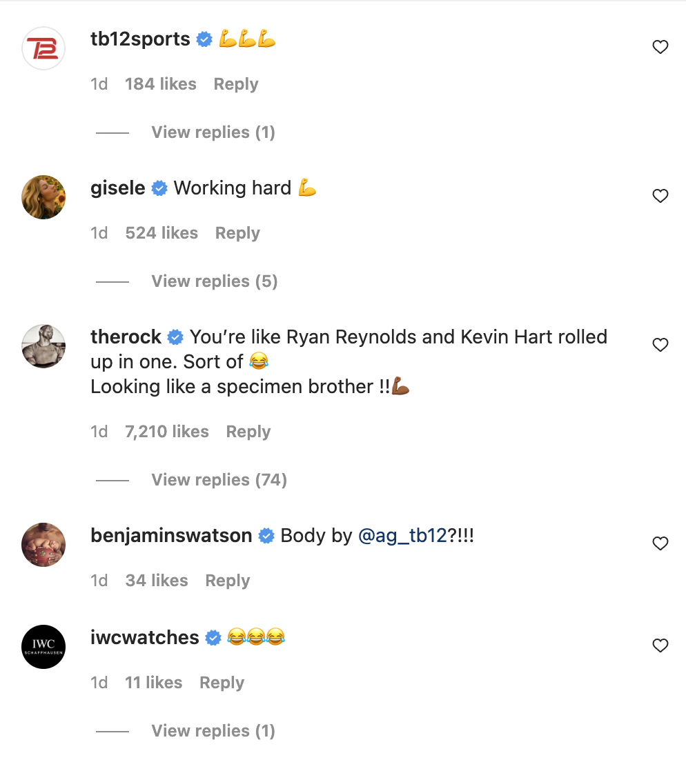 - 44-year-old Tom Brady shared a picture of his jacked arms on Instagram and the comments exploded