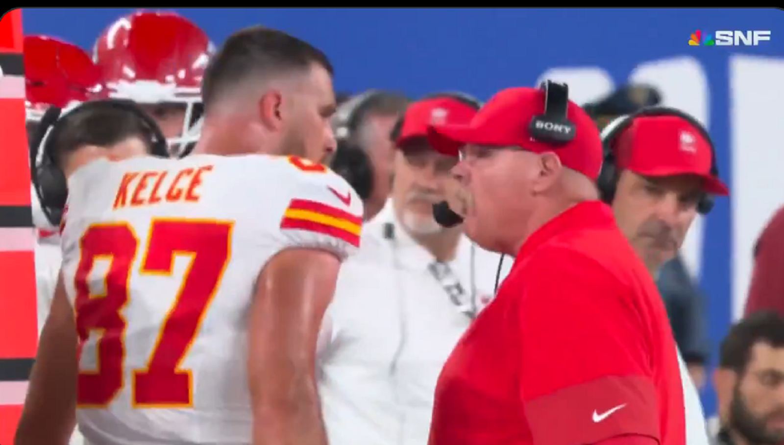 In the second quarter of the Chiefs-Giants game, a heated Reid and Kelce were seen yelling at each other after Kelce struggled in the first half.