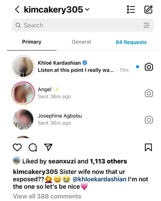 “The Shade Room can confirm that #KhloeKardashian did not send #KimCakery that DM, and Kim Cakery seemingly sent herself a message and ‘unread’ it to make it seem as though it was an unopened message from Khloe,” The Shade Room wrote in the caption.