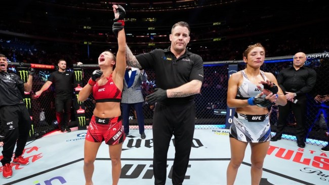 Before the main preliminary bouts could even begin, however, there was a huge controversy that set UFC fans on fire. After a strawweight fight between Karolina Kowalkiewicz and Silvana Gomez Juarez went the distance, Bruce Buffer stepped into the cage to read off the decision. Buffer began his usual spiel. But he was stopped before he could finish.