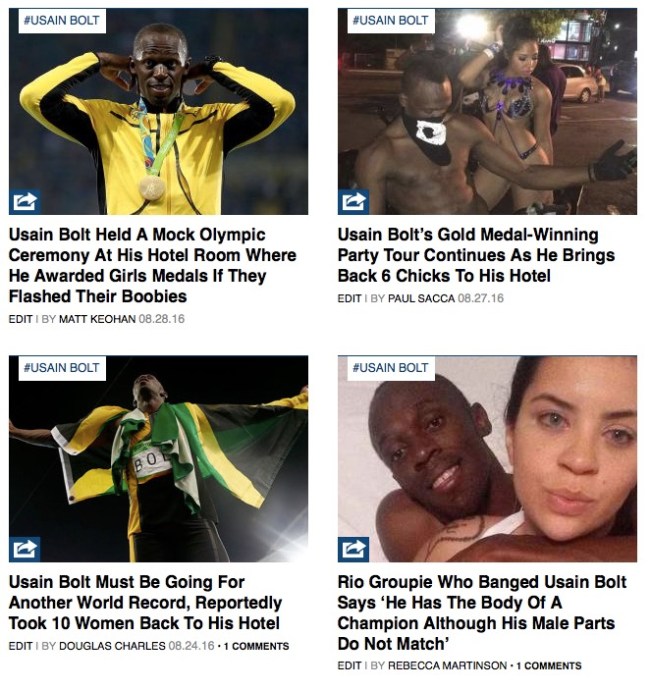 When you’re the fastest man on the planet and hold both the 100m and 200m world records, women flock to you like the salmon of Capistrano. And since Bolt set the world record in 2008, he’s had his rod in the water. Fishing rod, I mean, you sicko.