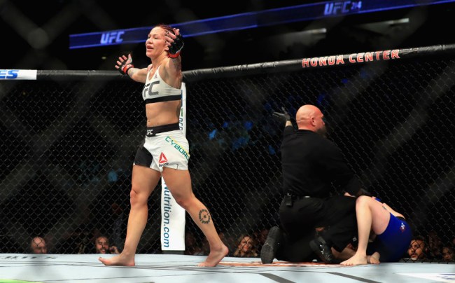 After mercifully putting an end to her beating of a VERY game Tonya Evinger with a NASTY knee at UFC 214 to claim the Women’s Featherweight Championship Cris “Cyborg” Justino knows who she would like to beat the living hell out of, I mean fight, next.