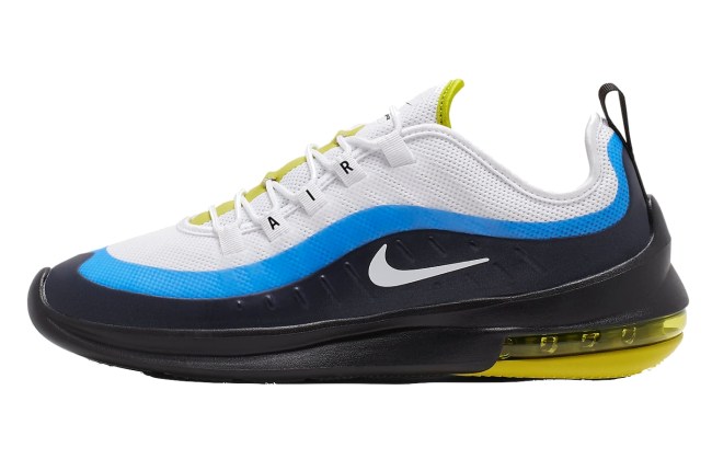 The Nike Air Max Axis shoes rock a durable no-sew overlay with the clearly visible Max Air cushioning. Sporting the white, hyper blue, and black colors, these shoes got a sleek style while still providing all the needed support and comfort.